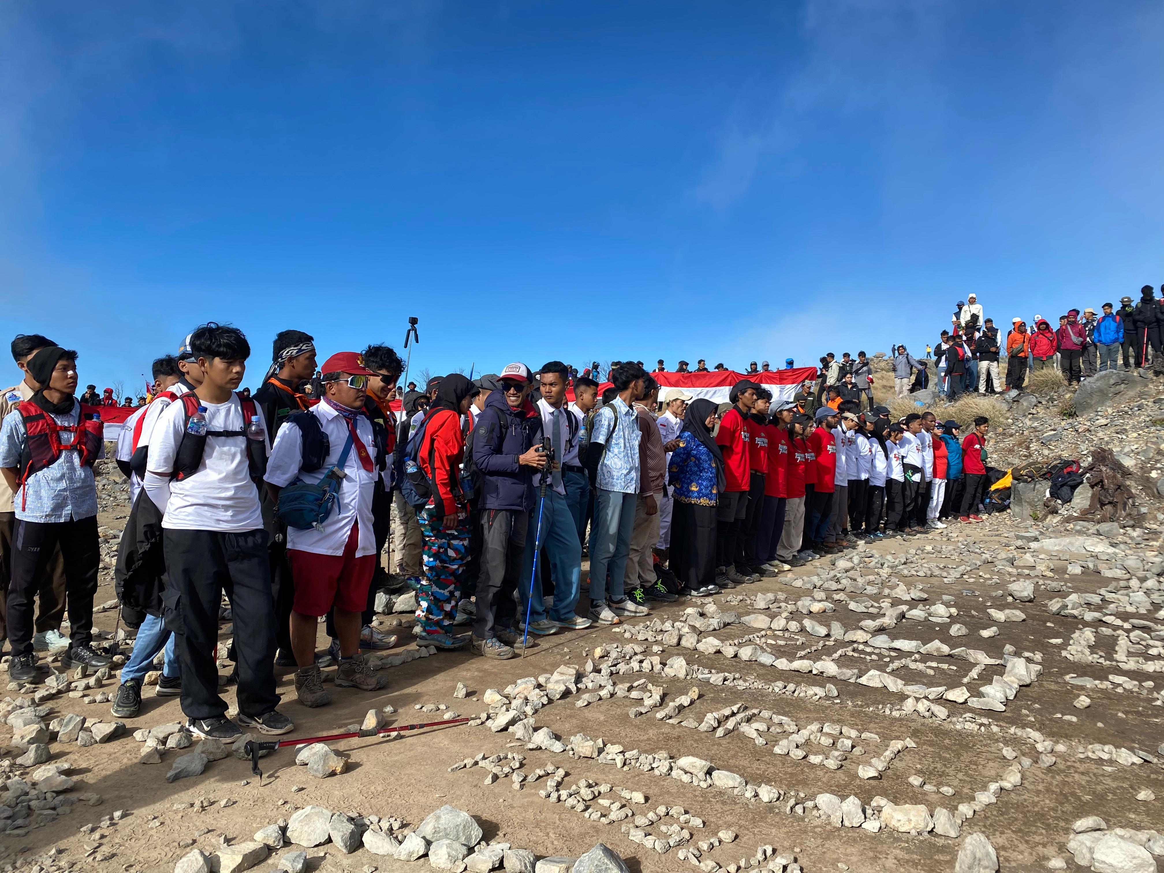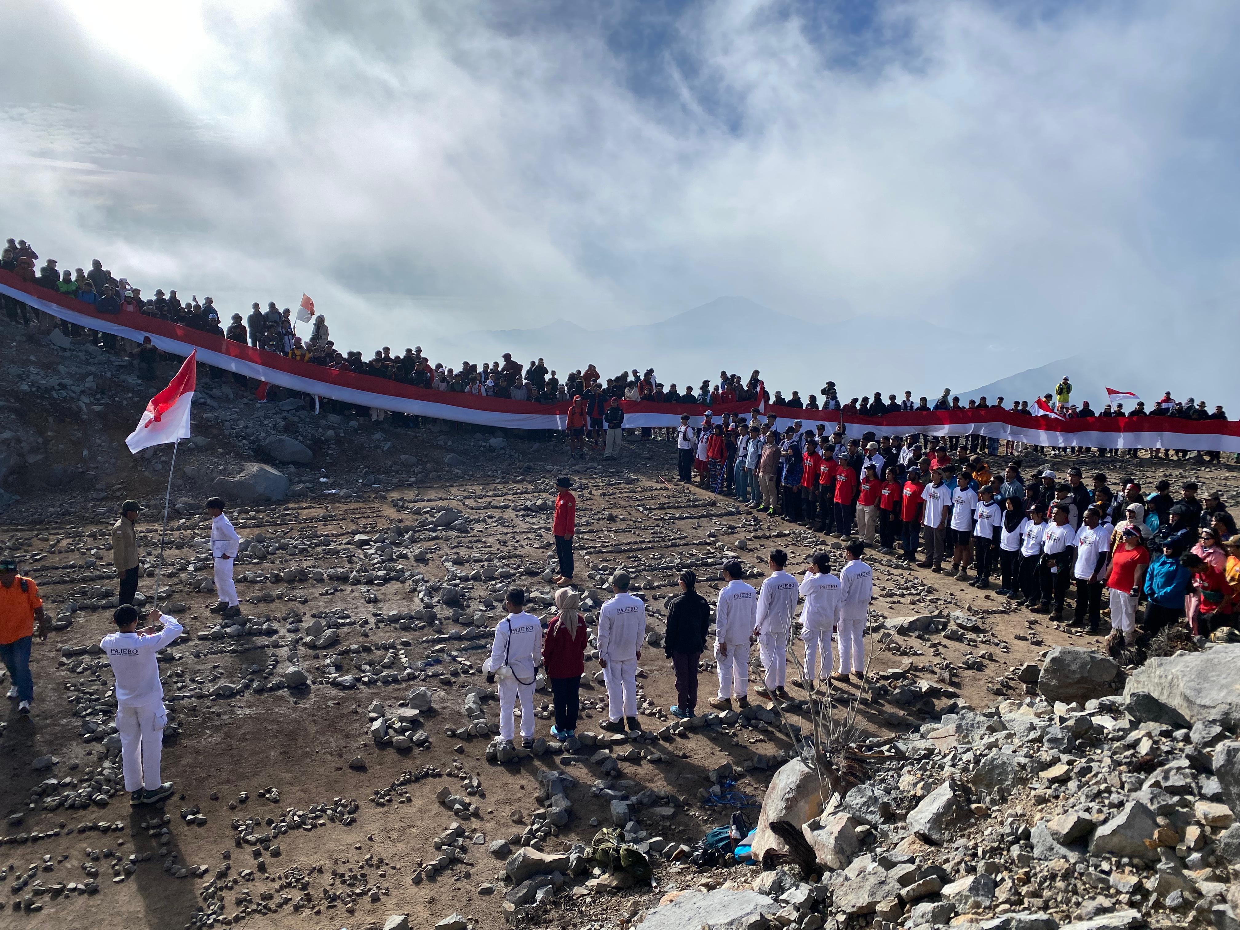 Yang paling menarik perhatian, para pendaki membentangkan spanduk Merah Putih sepanjang 80 meter, sebagai simbol HUT ke-80 RI. Spanduk raksasa ini membuktikan betapa besar semangat patriotisme yang menyala di hati para pendaki, menjadikan upacara di gunung ini sebagai perayaan kemerdekaan yang unik dan tak terlupakan.